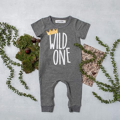Wild One Crown Grey Short Sleeve First first birthday romper boy