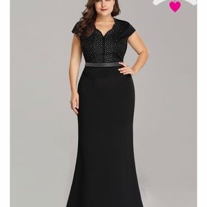 Dresses | Plus Size Cap Sleeve Beaded plus size black evening gowns with sleeves