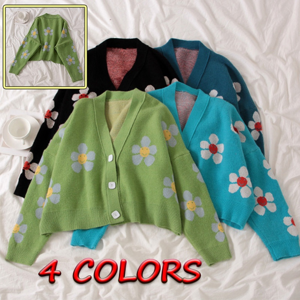 Preppy Style Flower Knit Cardigans short casual coat