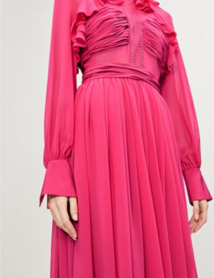 Selfportrait Pleated Chiffon Midi Dress fuchsia pleated chiffon midi dress