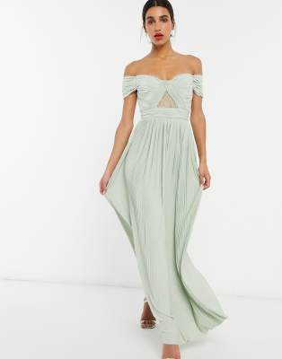 asos design premium scallop lace top pleated maxi dress
