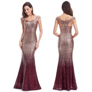 Chloe in Sequin Bridesmaid Dresses gold and red sequin dress