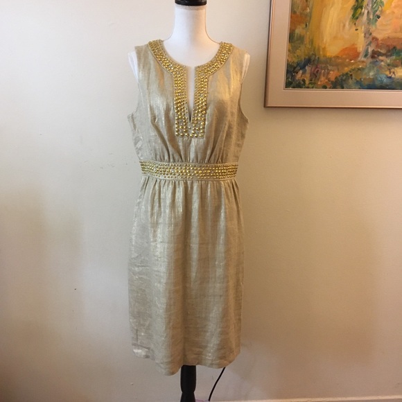 J.Crew Linen with Gold Metallic Shift gold linen dress