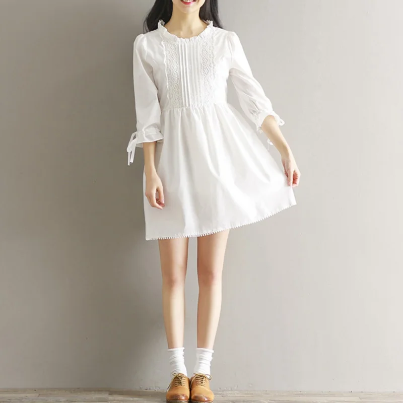 Sweet White Lace Dress Spring Autumn white japanese dress