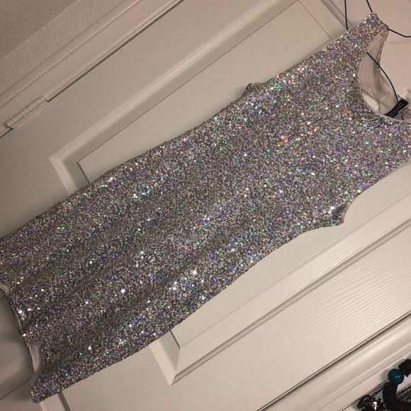 silver iridescent sequin mini dress