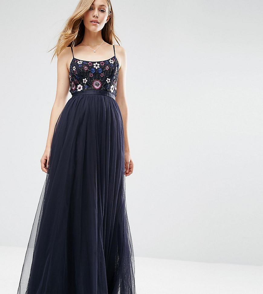 thread embellished mesh lace maxi dress needle and thread navy dress