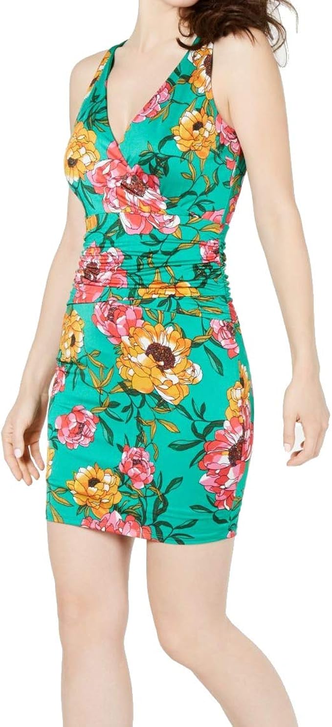 GUESS Womens Lamara Floral Surplice guess green dress