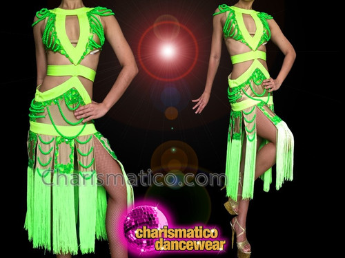 Diva's Two Tone Neon Green Cutout Salsa neon green fringe dress