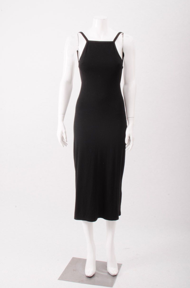REFORMATION Black Ribbed Knit Backless reformation backless dress