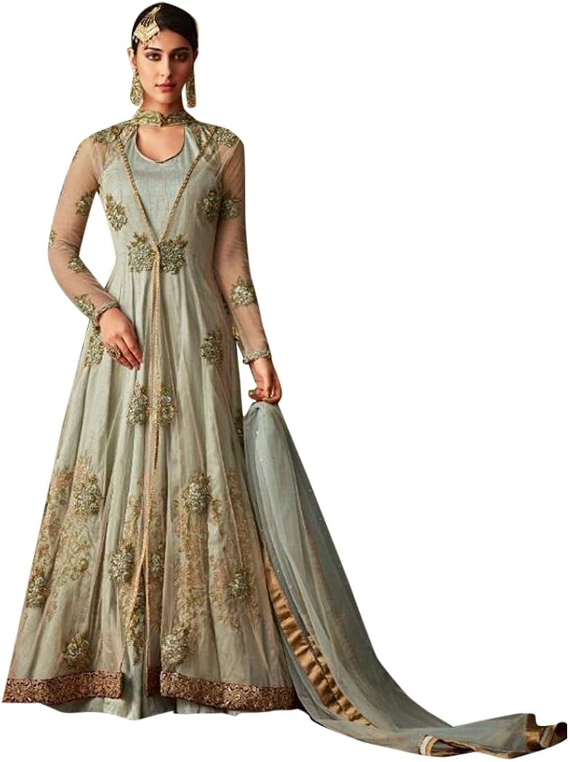 Grey Muslim Women Pakistani Bollywood party wear floor touch gown
