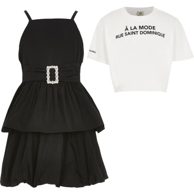 Girls black 2 in 1 belted prom dress river island prom dresses uk