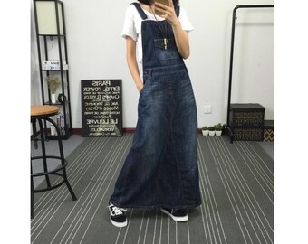 Denim overall dress | Etsy overall long dress denim