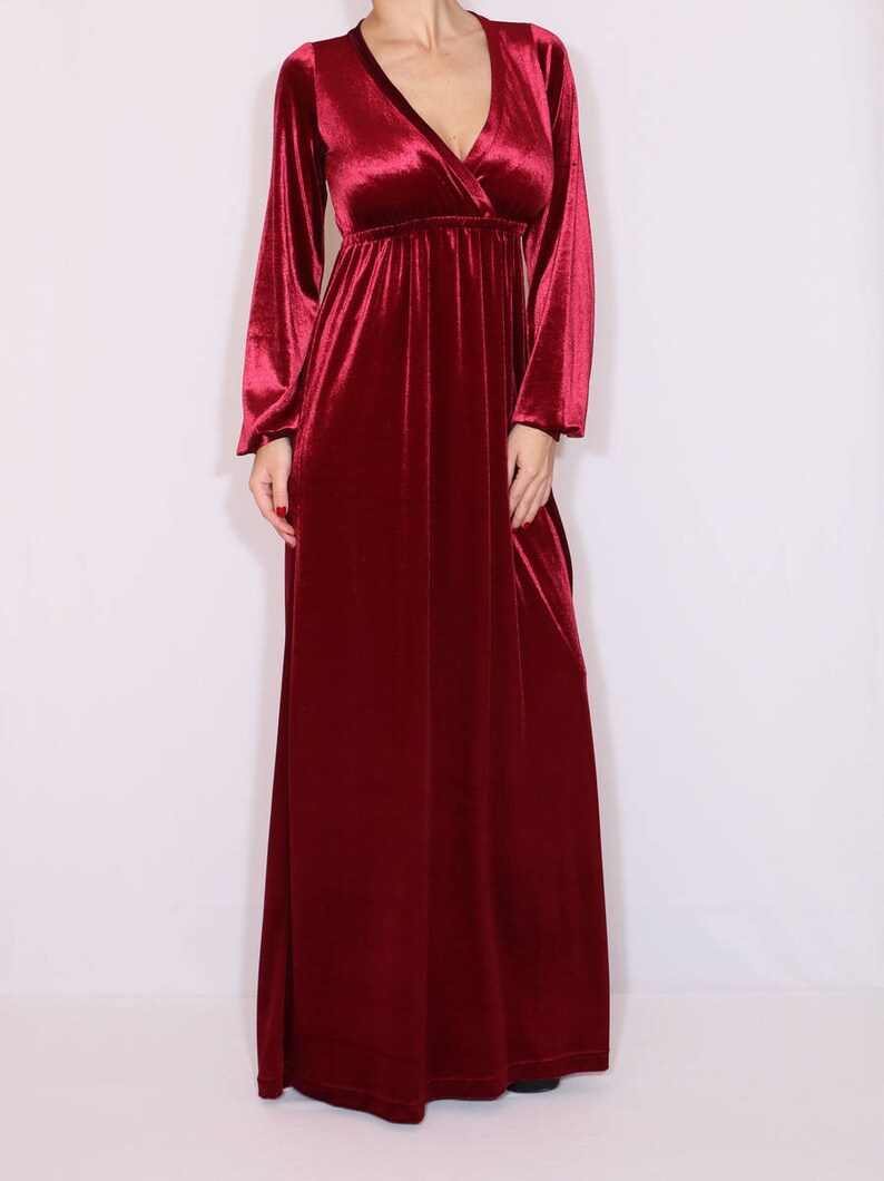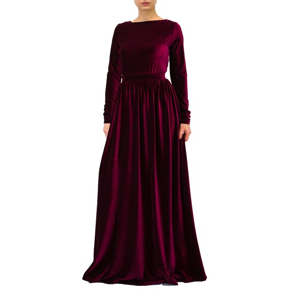 Wine red long velvet dress burgundy velvet burgundy maxi dress