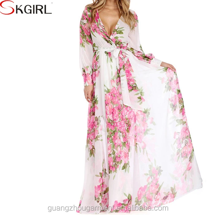 Long Sleeve Printed Floral Beach Maxi floor length boho dress