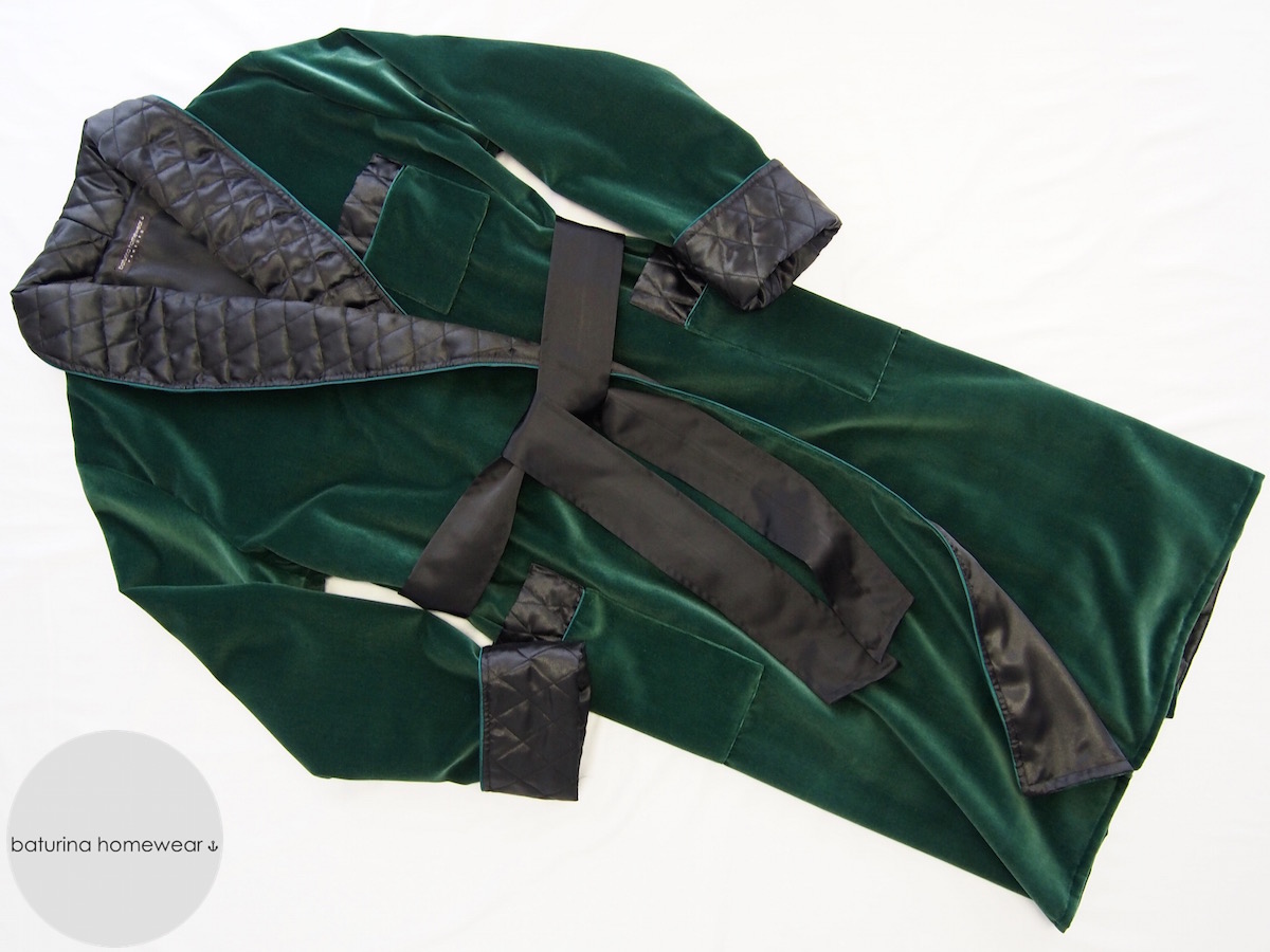 Dressing Gown with Quilted Silk Shawl Lapel emerald green dressing gown