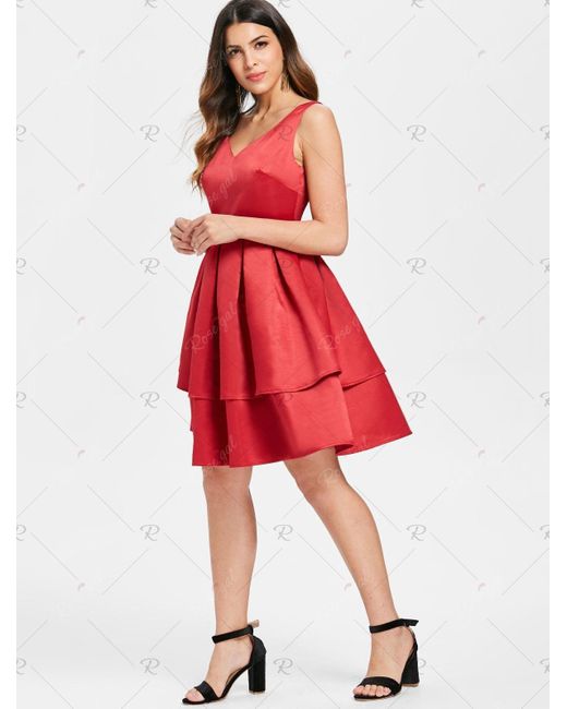 V Neck Sleeveless Fit And Flare Dress red v neck fit and flare dress
