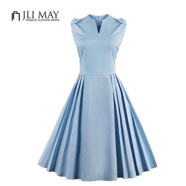 JLI MAY Vintage party swing dress women light blue swing dress