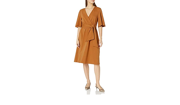 4 Sleeve Midi Dress, Rust 3 quarter sleeve midi dress