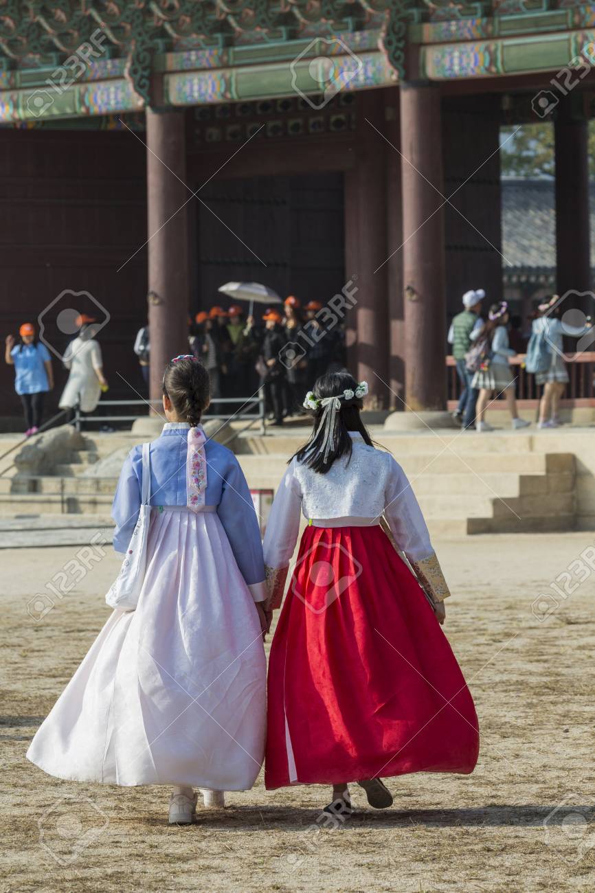 Seoul, South Korea - October 20, 2016 traditional dresses for young girls