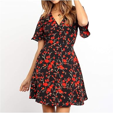 Dress Women Summer Floral V k Mini flare short dresses