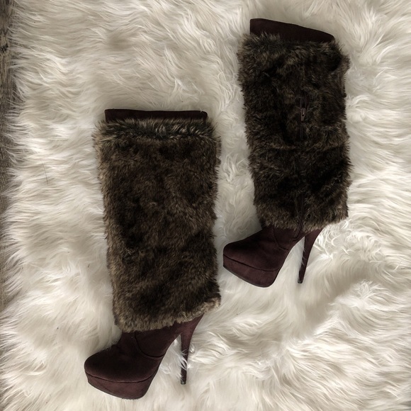 Thigh High Faux Fur Boot Heels thigh high fur boots