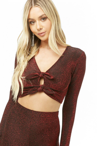 FOREVER 21 Red Metallic Knit Bow Knot forever 21 long sleeve crop top