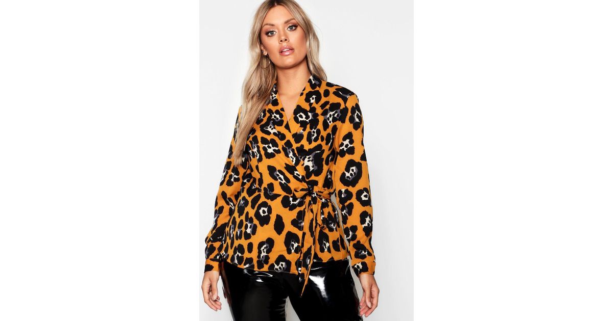 Boohoo Plus Woven Satin Leopard Wrap satin leopard wrap blouse