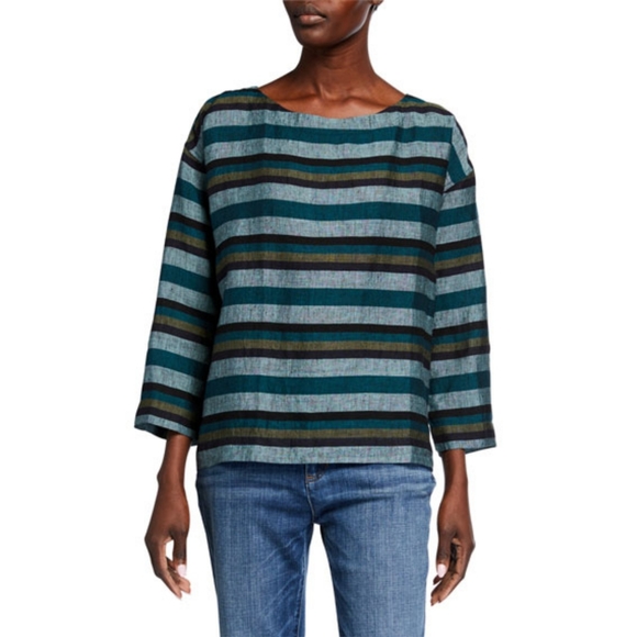 Eileen Fisher Tops | Eileen Fisher Teal eileen fisher striped linen top