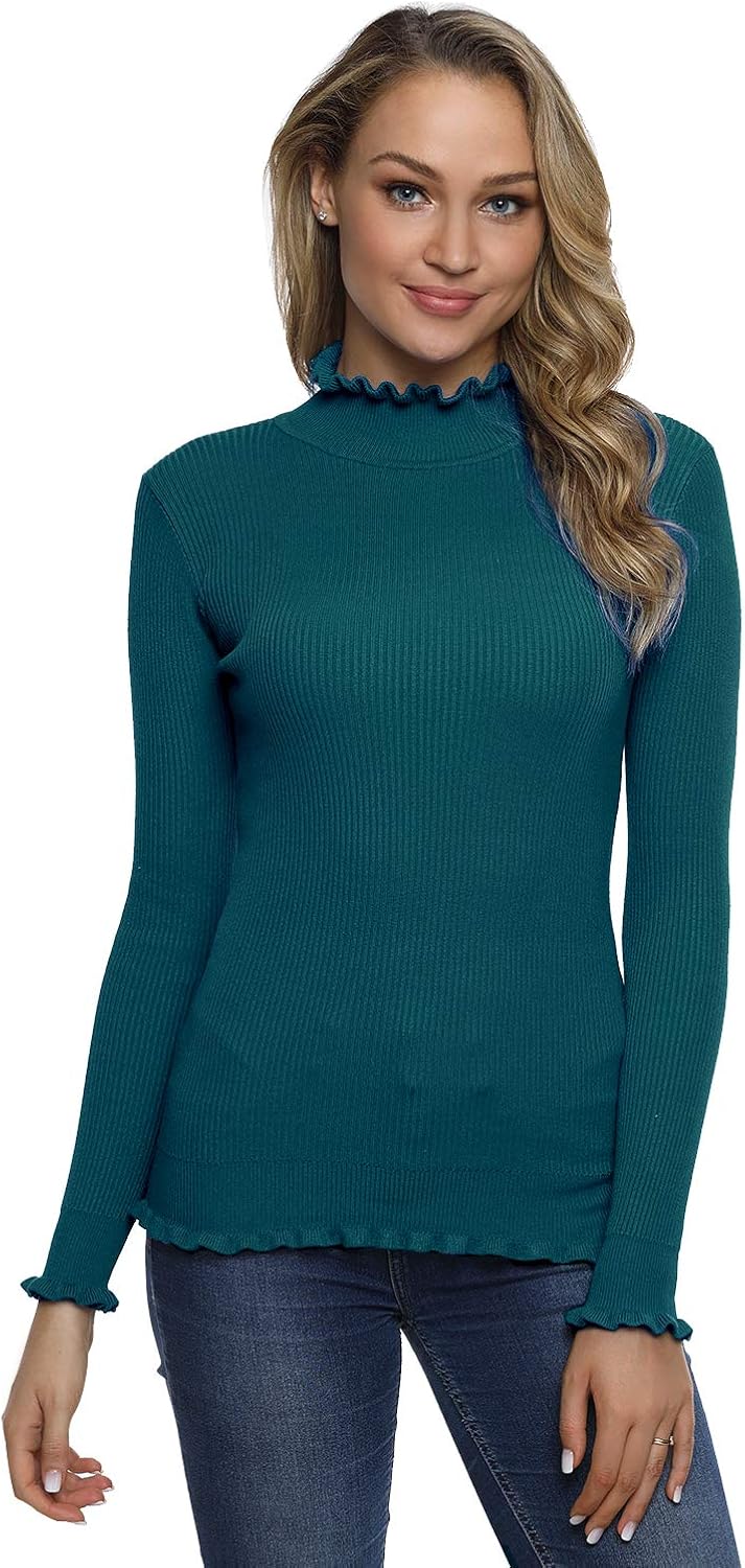 Ruffle Trim Ribbed Knit Pullover Tops ruffle sweater top