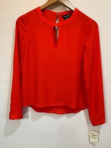 Trouve Nordstrom Women Red Top Blouse sheer red long sleeve top