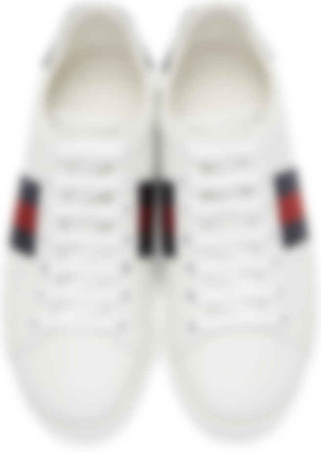 Gucci: White \u0026 Navy Snake Ace Sneakers gucci ace sneakers navy